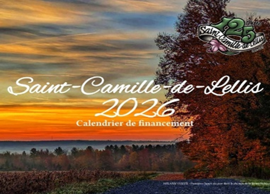 ActualitésMise à jour 2026-02-16 Calendrier du 125e pour 2026 Le comité du 125e vous offre le calendrier 2026 de St-Camille au coût de 10$.