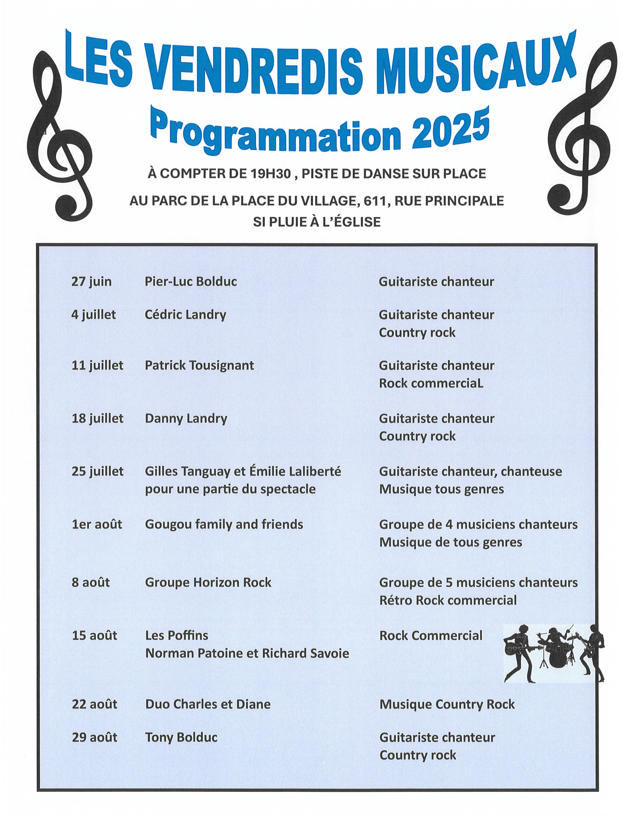 ***Prendre note qu'en cas de pluie, les prestations sont données dans l'église.***